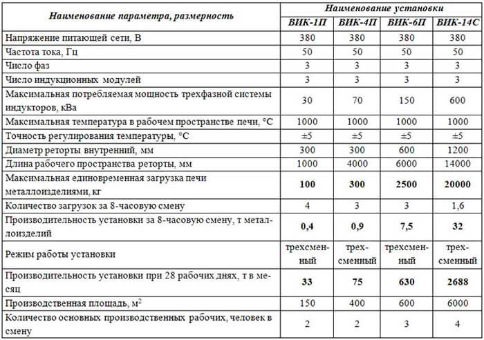 Ведущей технологической операцией является собственно операция термодиффузионного цинкования, осуществляемая в индукционной установке (установке ТДЦЭ). Основные технические характеристики установки приведены в таблице 1.